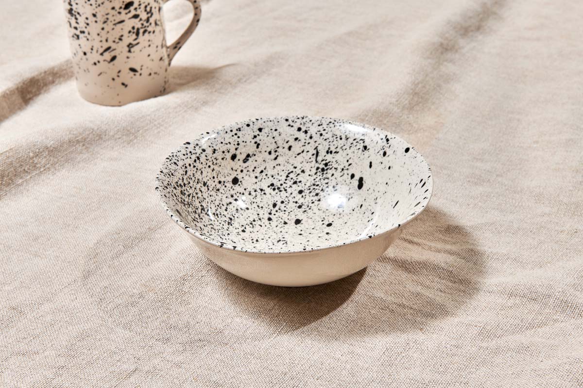 Whether it's a morning bowl of cereal or an indulgent pudding, our Ama bowls fit the bill. Their handmade shape is created using traditional techniques indigenous to Vietnam and the splatter finish is created by hand.
