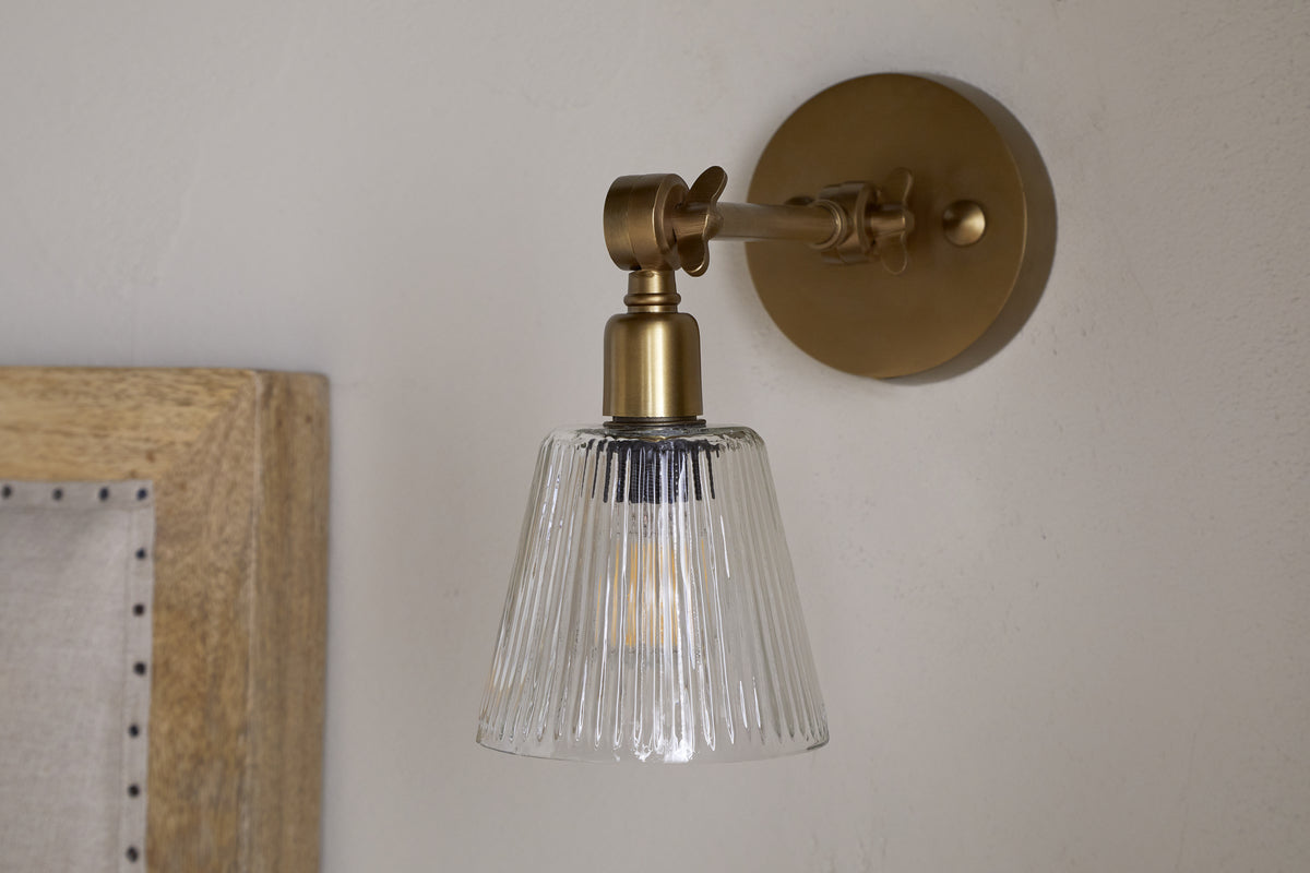 https://www.nkuku.com/products/davika-ribbed-glass-task-wall-lamp-clear-antique-brass15266555691386Davika Ribbed Glass Task Wall Lamp - Clear & Antique Brass175.00https:files/DL61-DL6101-Davika_Ribbed_Glass_Task_Wall_Lamp-Clear_and_Antique_Brass-Nkuku-1.jpghttps:files/DL61-DL6101-Davika_Ribbed_Glass_Task_Wall_Lamp-Clear_and_Antique_Brass-Nkuku-1.jpgGBPInStockLIGHTS86404464738All Lighting299495456944Full Price162774188141New Arrivals165130338413New Lighting135407698018okendo_all137262202978Promo Collection311846961328Spot Lights286604296368Statement TEST 31/5/22312417419440Wall LightsOur Davika Glass Wall Lamp has a delicately fluted glass shade that diffuses light softly, casting a beautifully warming glow in a bedside or living space. Contrasted by the muted elegance of the antique brass neck and base plate, it offers timeless charm with thoughtful detail. The adjustable arm adds extra functionality, allowing you to direct the light exactly where you need it.nkukuall lightingalttextAW25fullpricelightingnewNL_Glasspromoapplicablespot lightsStaffapplicablestandard deliverywall lightsadd-to-carthttps:files/DL61-DL6101-Davika_Ribbed_Glass_Task_Wall_Lamp-Clear_and_Antique_Brass-Nkuku-2.jpghttps:files/DL61-DL6101-Davika_Ribbed_Glass_Task_Wall_Lamp-Clear_and_Antique_Brass-Nkuku-3.jpghttps:files/DL61-DL6101-Davika_Ribbed_Glass_Task_Wall_Lamp-Clear_and_Antique_Brass-Nkuku-4.jpghttps:files/WB-DL61-DL6101-Davika_Ribbed_Glass_Task_Wall_Lamp-Clear_Antique_Brass-Nkuku-1.jpghttps:files/WB-DL61-DL6101-Davika_Ribbed_Glass_Task_Wall_Lamp-Clear_Antique_Brass-Nkuku-2.jpg55721987867002Antique Brass & Clear Glass / One Size175.00175.00https:https://www.nkuku.com/products/davika-ribbed-glass-task-wall-lamp-clear-antique-brass?variant=55721987867002InStockAntique Brass & Clear GlassOne Size