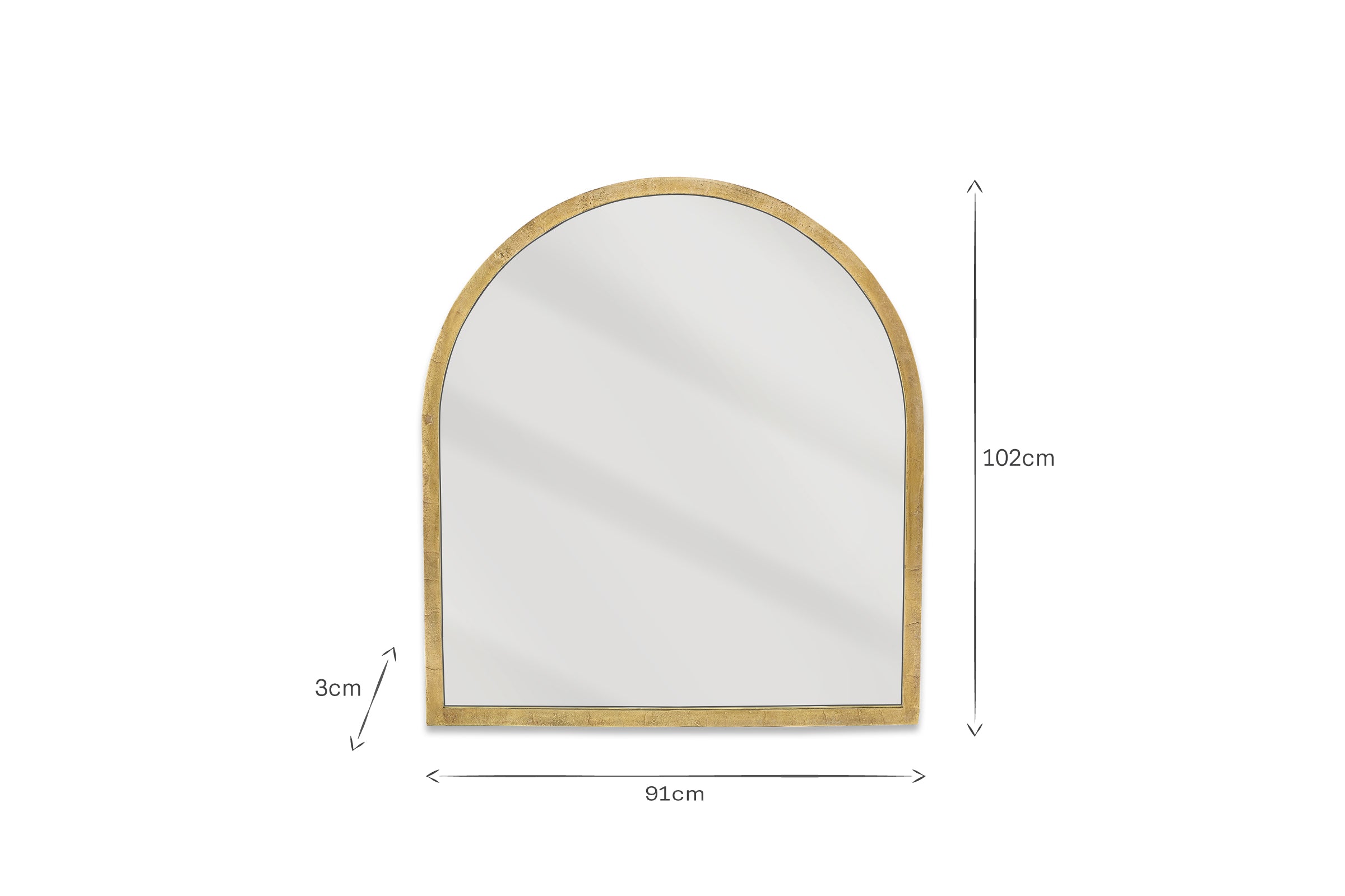 The Murwara arch-shaped mirror is designed to sit neatly above a mantelpiece or console table. The strikingly elegant brass-toned frame is crafted from cast aluminium in a simple arch design. The proportions have carefully taken into account the size of a standard mantelpiece, with an arch shape providing a sophisticated and practical focal point. The Murwara would also work well above a sideboard in a dining area, or to add the finishing touch to a hallway, postitioned above a console table.