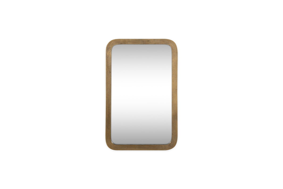 Our Ungura rounded mirror is a striking combination of both craftsmanship and style. Handcrafted from cast aluminium, it boasts an imperfect textured finish achieved by being shaped and moulded using sand casting, an environmentally-friendly process that allows nearly every material to be recycled. Its soft, rounded edges and elegant brass colour add a stylish charm to any space. Designed for portrait hanging, it is an ideal choice for your bedroom or bathroom. Available in two sizes.