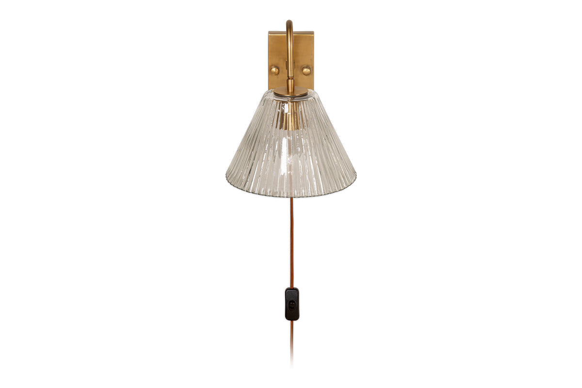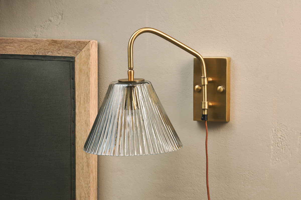 Our Akoli Glass Wall Lamp has a delicately fluted glass shade which diffuses the light softly and