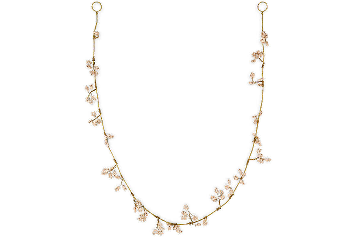 This festive garland brings together mango wood beads and antique brass-coloured wire in a delicate, foliage-inspired design. Its natural texture and warm metallic accents make it a versatile piece for dressing mantels, banisters, or festive tables with understated seasonal charm.