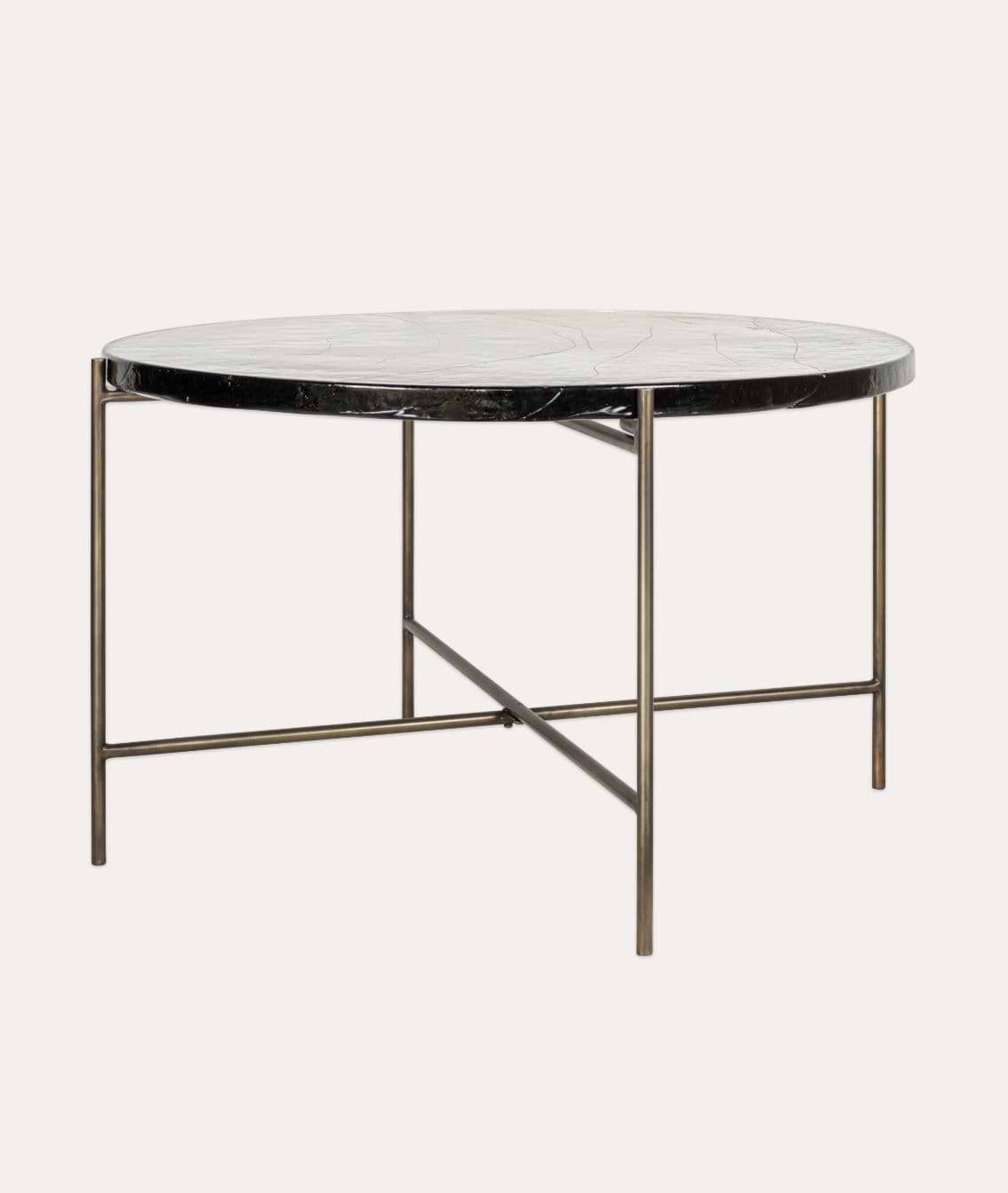 This striking iron coffee table has a unique sandblasted glass top – a technique dating back to the 15th Century where the design is carved into sand and molten glass poured in. When cooled, the sand is removed to reveal the cast glass to be smooth on the surface but with a wave like pattern, giving the finished piece a beautifully textured, unique finish.