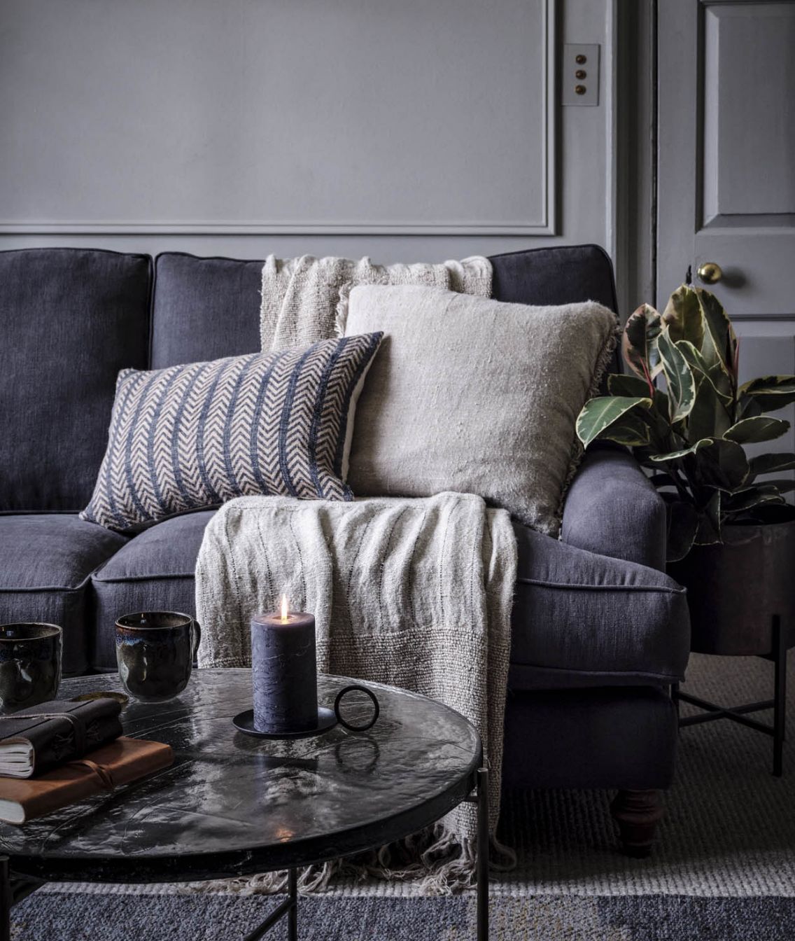 Bring comfort to an interior with a rich, dark colour palette. For effortless style, add a dark leather statement chair and pair tactile, neutral fabrics, elegant candles, and striking table lamps for a living space with a renewed sense of contemporary comfort.