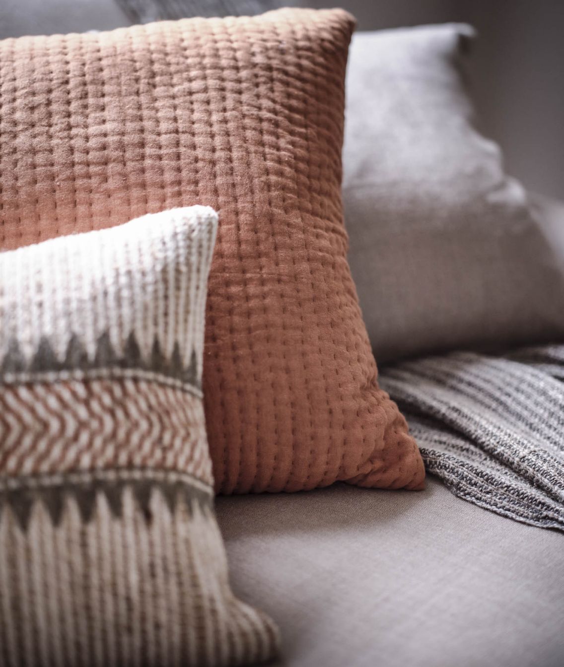 Mix and match handwoven cushions and throws to create an inviting that’s perfect for curling up in the cooler months. Pair our new Zairya Jute and Cotton Cushion Cover with the Deuli Cushion Cover in Rust for an added pop of autumnal colour to your living space.