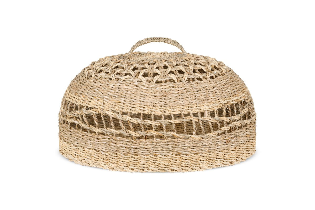 The Aarusha seagrass food cover blends intricate weaving work with sustainable seagrass. The tactile feel of the weave and the warm natural tones of the seagrass make a striking addition to a table setting. The beauty of the Aarusha is how easily and instantly it transforms a table, adding an appealing decorative detail and providing a practical cover.
