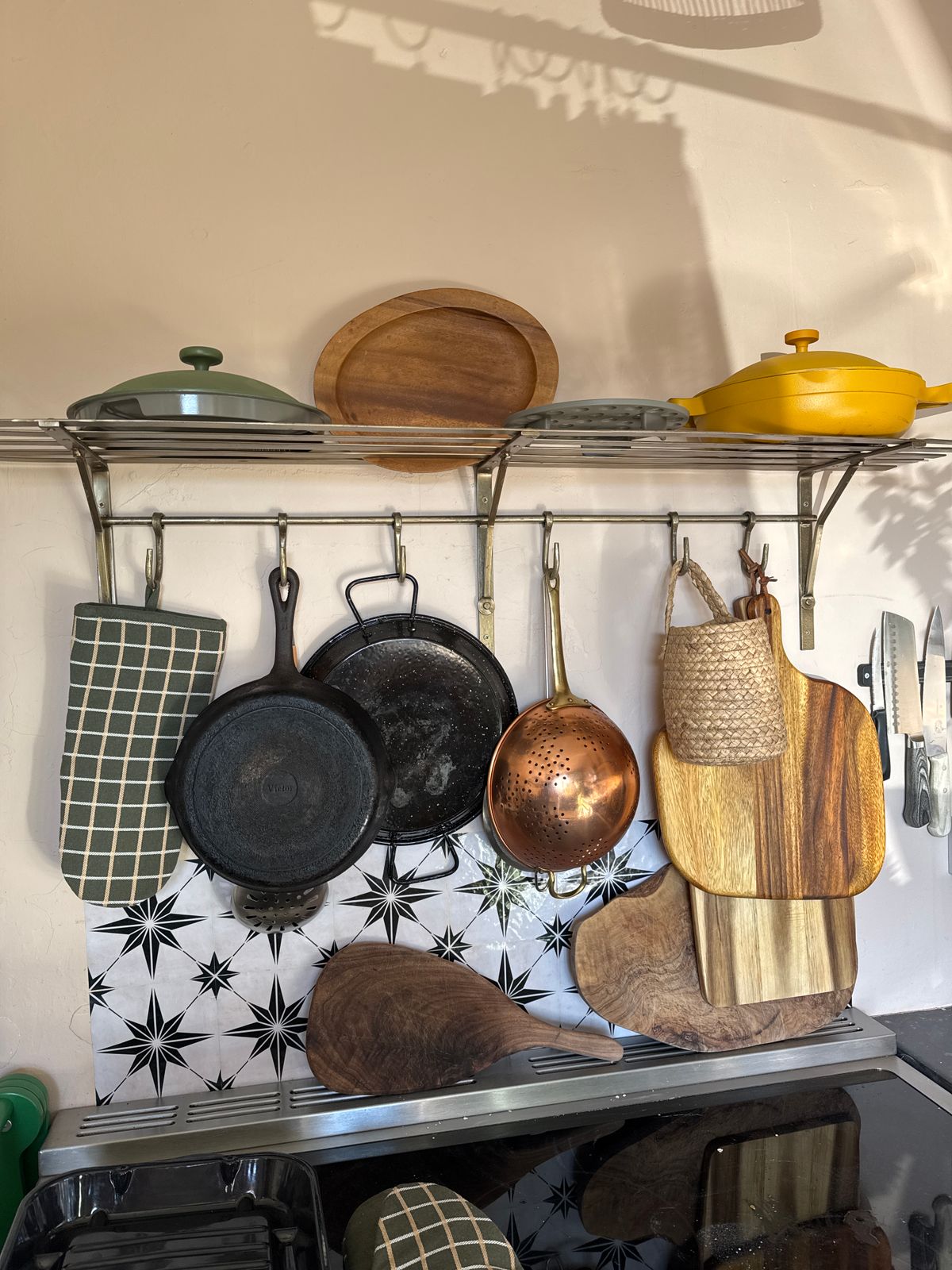 Live this antique brass storage shelf which adds personality to my kitchen! Very practical and stylish and it has been admired by all my friends!