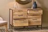The natural light wood tones of our Dasai mango wood chest of drawers make this a versatile set of drawers that would fit perfectly in a bedroom. The modern design adds a contemporary look with the framework and legs crafted from sturdy iron and the drawer handles have a minimilist rolled bar design. The chest has six practical drawers with plenty of space for clothes. The top of the chest of drawers can be styled with photo frames, a jewellery box and a table lamp for an elegant display.