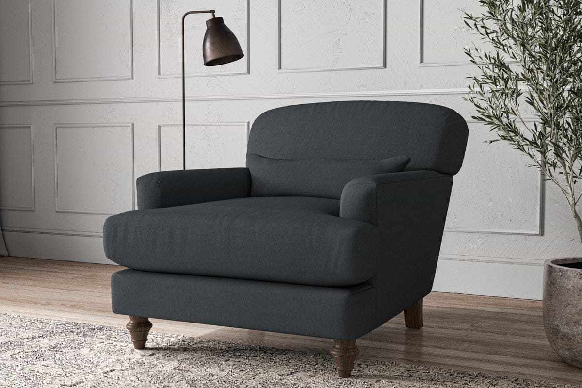 Our Deni armchair is generously proportioned with deep, sumptuous seat cushions for luxurious comfort. Handcrafted from a solid hardwood frame with high-grade steel serpentine springs and foam and fibre wrap filling, this timeless collection celebrates the best of British quality and design. Fine details include in-built back cushions, hand-turned hardwood feet and a separate lumbar cushion for added comfort.