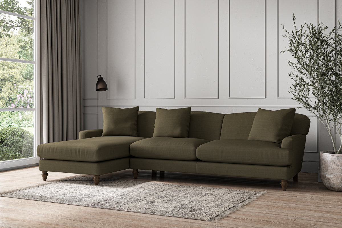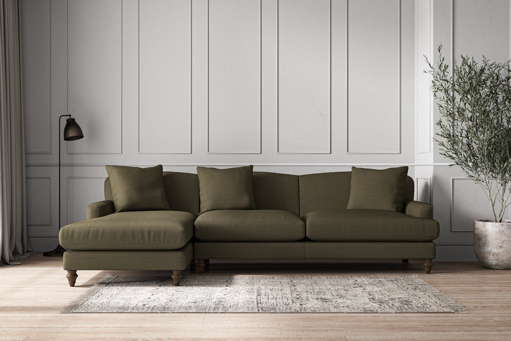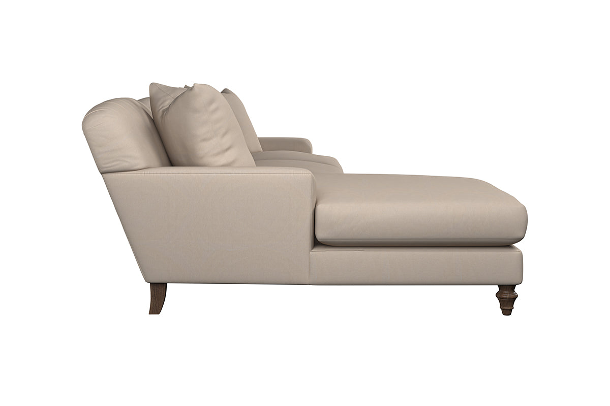 Our Deni grand left hand chaise sofa is generously proportioned with deep, sumptuous seat cushions for luxurious comfort. Handcrafted from a solid hardwood frame with high-grade steel serpentine springs and foam and fibre wrap filling, this timeless collection celebrates the best of British quality and design. Fine details include in-built back cushions, hand-turned hardwood feet and a set of three scatter cushions for added comfort.