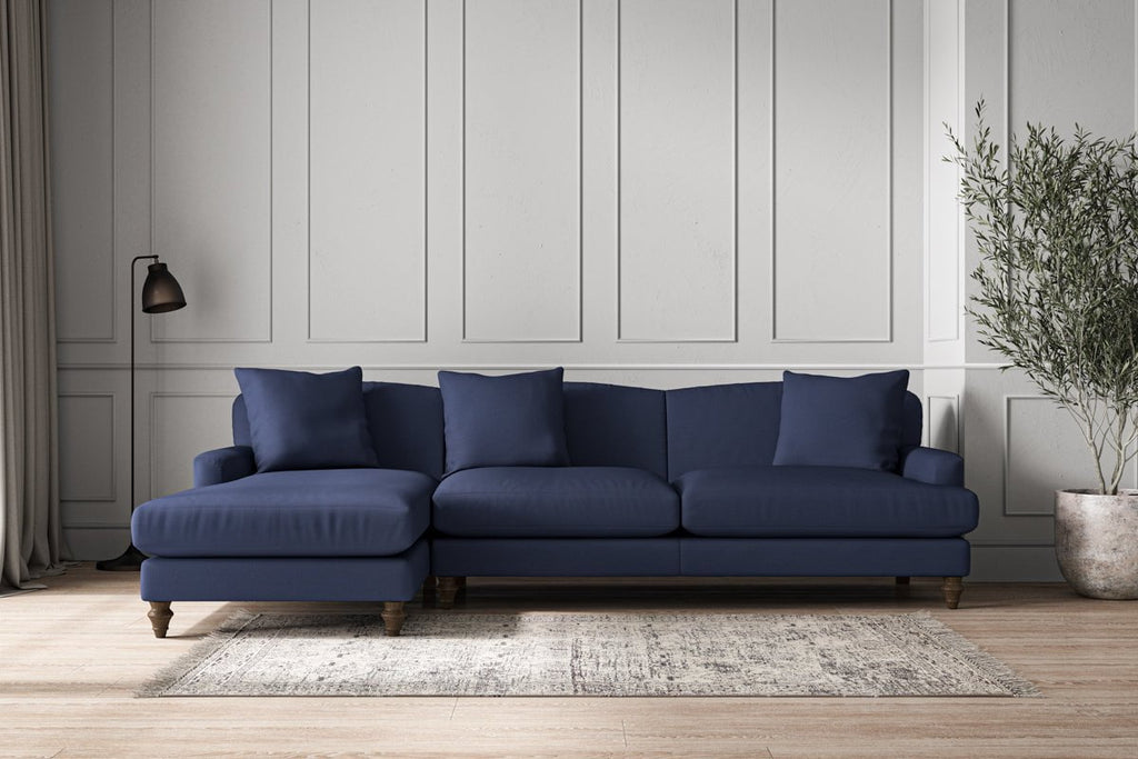 Deni Grand Left Hand Chaise Sofa - Recycled Cotton Navy