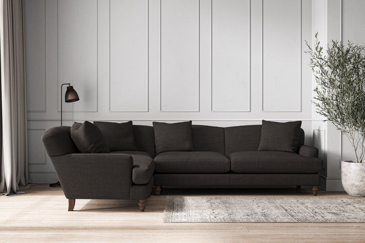 Our Deni grand left hand corner sofa is generously proportioned with deep, sumptuous seat cushions for luxurious comfort. Handcrafted from a solid hardwood frame with high-grade steel serpentine springs and foam and fibre wrap filling, this timeless collection celebrates the best of British quality and design. Fine details include in-built back cushions, hand-turned hardwood feet and a set of four scatter cushions for added comfort.