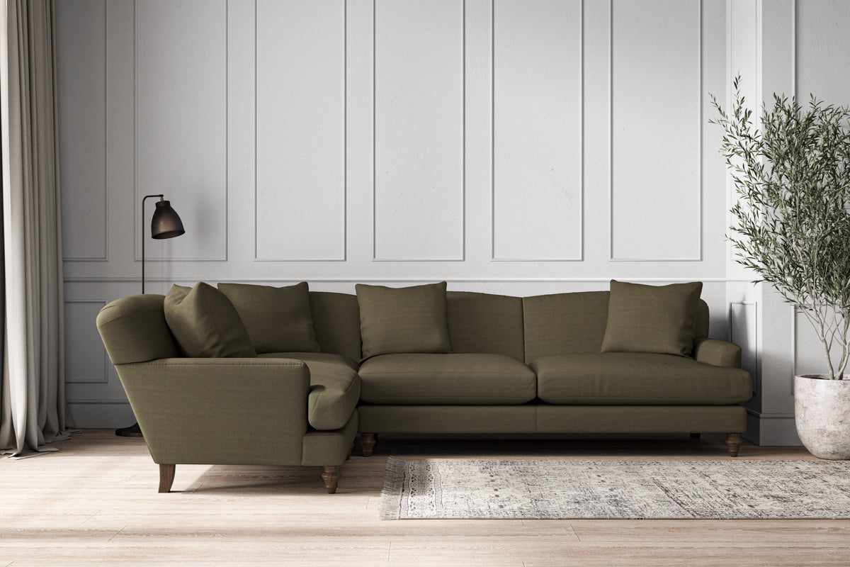Our Deni grand left hand corner sofa is generously proportioned with deep, sumptuous seat cushions for luxurious comfort. Handcrafted from a solid hardwood frame with high-grade steel serpentine springs and foam and fibre wrap filling, this timeless collection celebrates the best of British quality and design. Fine details include in-built back cushions, hand-turned hardwood feet and a set of four scatter cushions for added comfort.