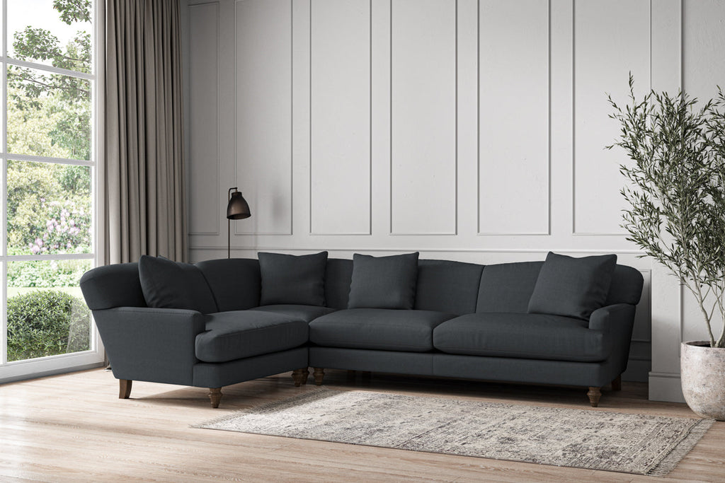 Our Deni grand left hand corner sofa is generously proportioned with deep, sumptuous seat cushions for luxurious comfort. Handcrafted from a solid hardwood frame with high-grade steel serpentine springs and foam and fibre wrap filling, this timeless collection celebrates the best of British quality and design. Fine details include in-built back cushions, hand-turned hardwood feet and a set of four scatter cushions for added comfort.