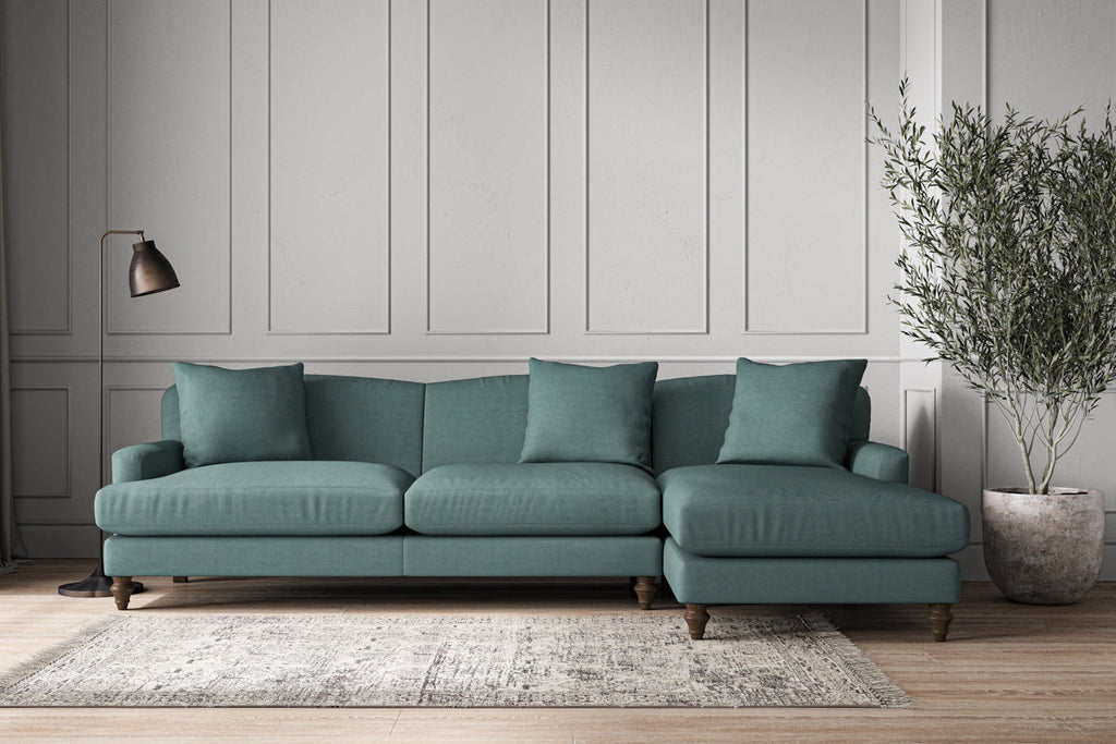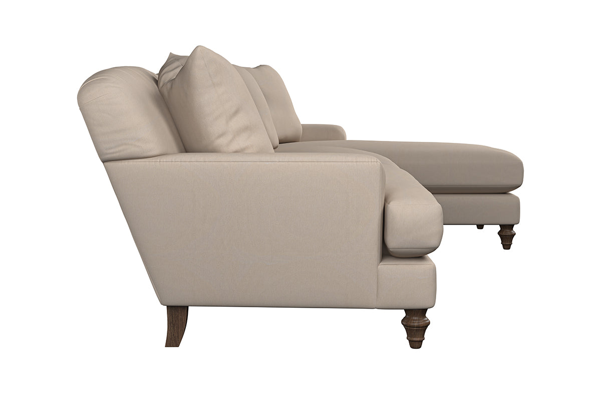 Our Deni grand right hand chaise sofa is generously proportioned with deep, sumptuous seat cushions for luxurious comfort. Handcrafted from a solid hardwood frame with high-grade steel serpentine springs and foam and fibre wrap filling, this timeless collection celebrates the best of British quality and design. Fine details include in-built back cushions, hand-turned hardwood feet and a set of three scatter cushions for added comfort.