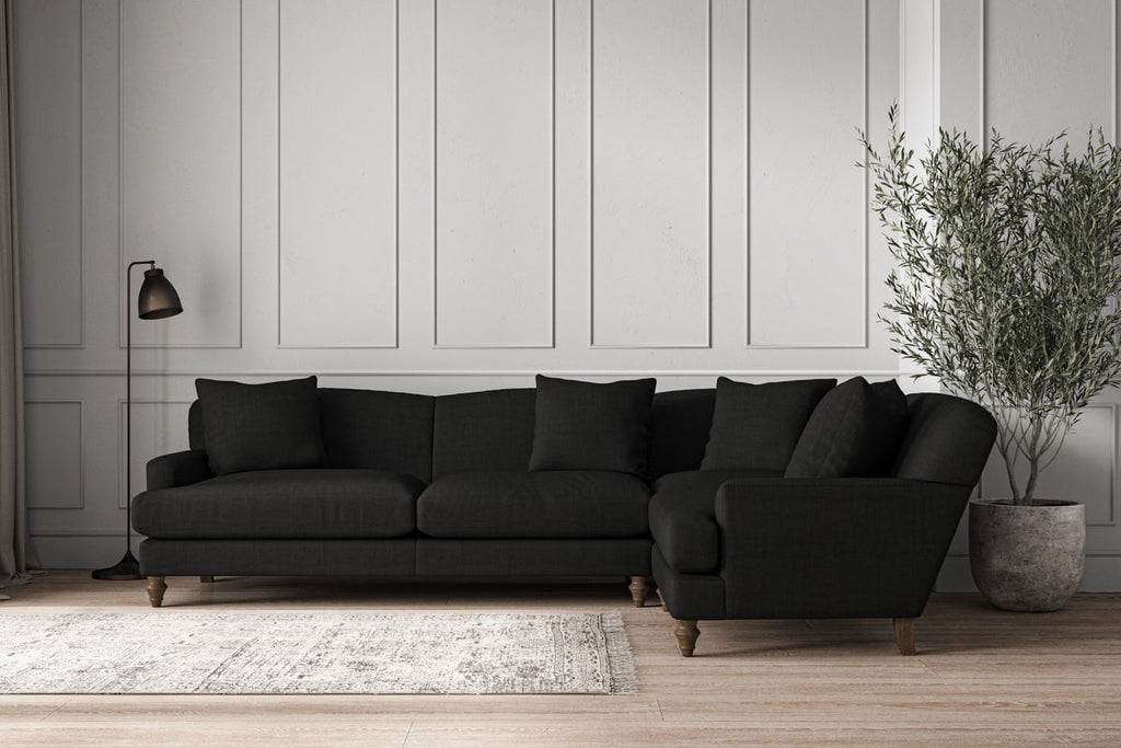 Our Deni grand right hand corner sofa is generously proportioned with deep, sumptuous seat cushions for luxurious comfort. Handcrafted from a solid hardwood frame with high-grade steel serpentine springs and foam and fibre wrap filling, this timeless collection celebrates the best of British quality and design. Fine details include in-built back cushions, hand-turned hardwood feet and a set of four scatter cushions for added comfort.