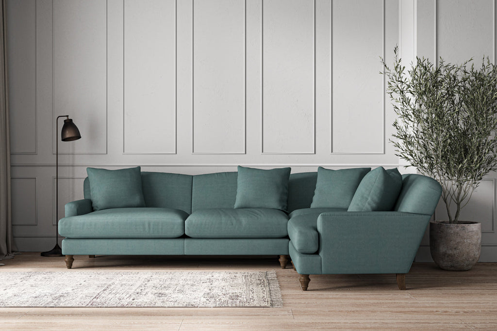 Our Deni grand right hand corner sofa is generously proportioned with deep, sumptuous seat cushions for luxurious comfort. Handcrafted from a solid hardwood frame with high-grade steel serpentine springs and foam and fibre wrap filling, this timeless collection celebrates the best of British quality and design. Fine details include in-built back cushions, hand-turned hardwood feet and a set of four scatter cushions for added comfort.
