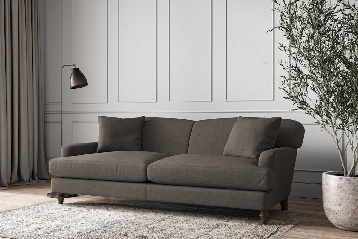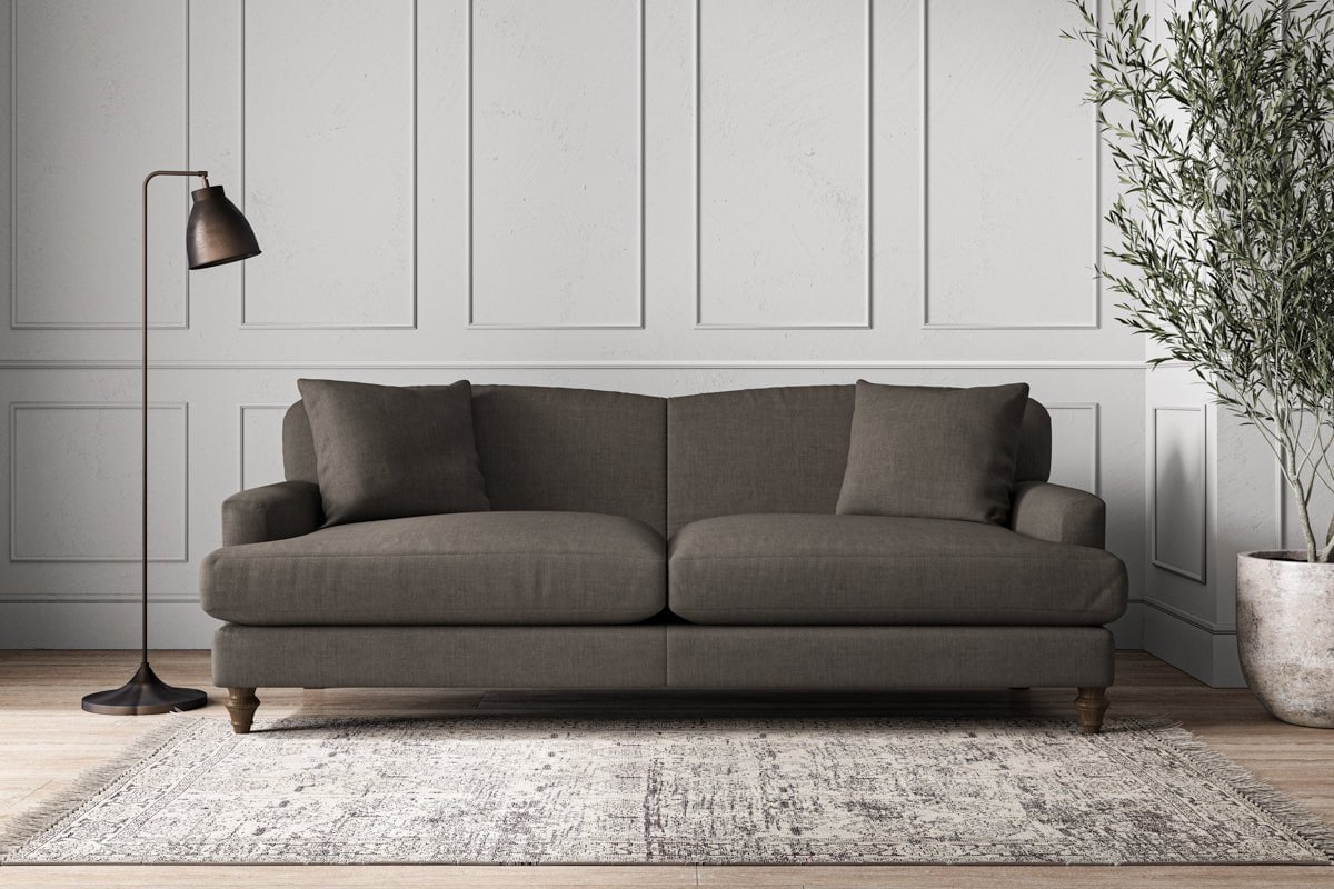 Our Deni grand sofa is generously proportioned with deep, sumptuous seat cushions for luxurious comfort. Handcrafted from a solid hardwood frame with high-grade steel serpentine springs and foam and fibre wrap filling, this timeless collection celebrates the best of British quality and design. Fine details include in-built back cushions, hand-turned hardwood feet and a set of two scatter cushions for added comfort.