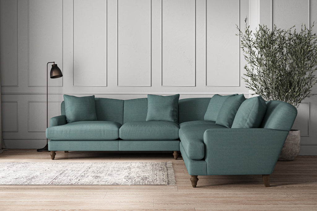 Our Deni large corner sofa is generously proportioned with deep, sumptuous seat cushions for luxurious comfort. Handcrafted from a solid hardwood frame with high-grade steel serpentine springs and foam and fibre wrap filling, this timeless collection celebrates the best of British quality and design. Fine details include in-built back cushions, hand-turned hardwood feet and a set of five scatter cushions for added comfort.