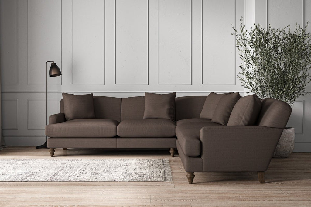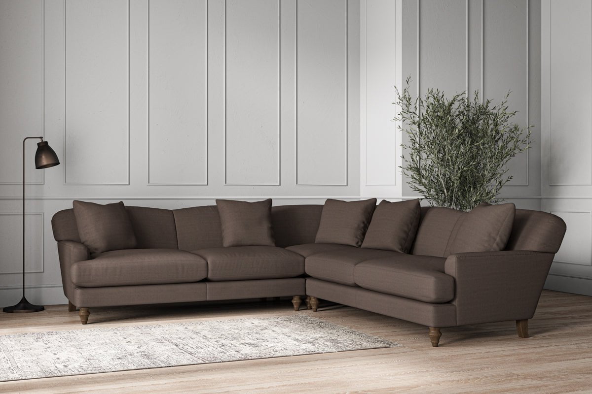 Our Deni large corner sofa is generously proportioned with deep, sumptuous seat cushions for luxurious comfort. Handcrafted from a solid hardwood frame with high-grade steel serpentine springs and foam and fibre wrap filling, this timeless collection celebrates the best of British quality and design. Fine details include in-built back cushions, hand-turned hardwood feet and a set of five scatter cushions for added comfort.