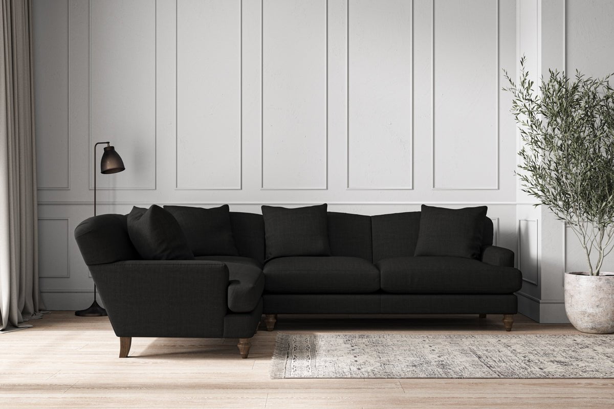 Our Deni large left hand corner sofa is generously proportioned with deep, sumptuous seat cushions for luxurious comfort. Handcrafted from a solid hardwood frame with high-grade steel serpentine springs and foam and fibre wrap filling, this timeless collection celebrates the best of British quality and design. Fine details include in-built back cushions, hand-turned hardwood feet and a set of four scatter cushions for added comfort.