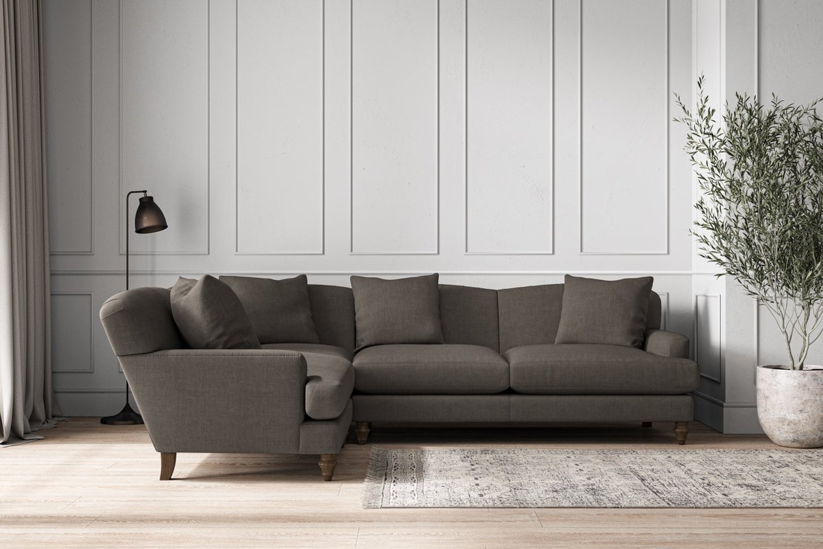Our Deni large left hand corner sofa is generously proportioned with deep, sumptuous seat cushions for luxurious comfort. Handcrafted from a solid hardwood frame with high-grade steel serpentine springs and foam and fibre wrap filling, this timeless collection celebrates the best of British quality and design. Fine details include in-built back cushions, hand-turned hardwood feet and a set of four scatter cushions for added comfort.