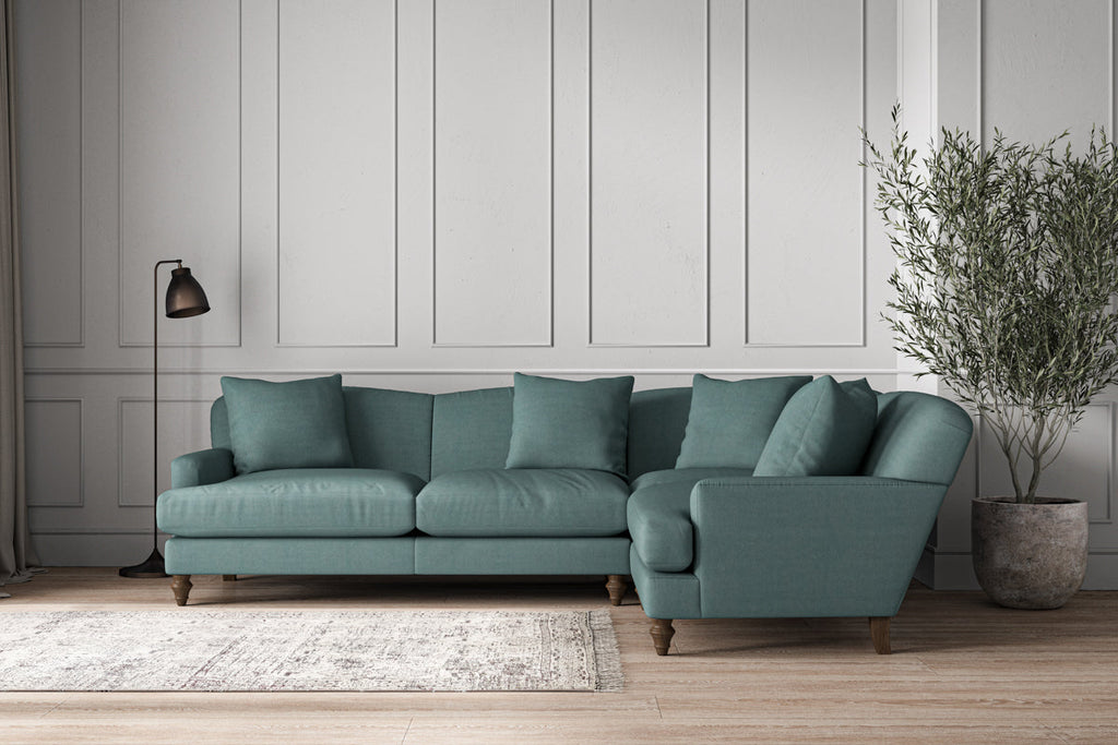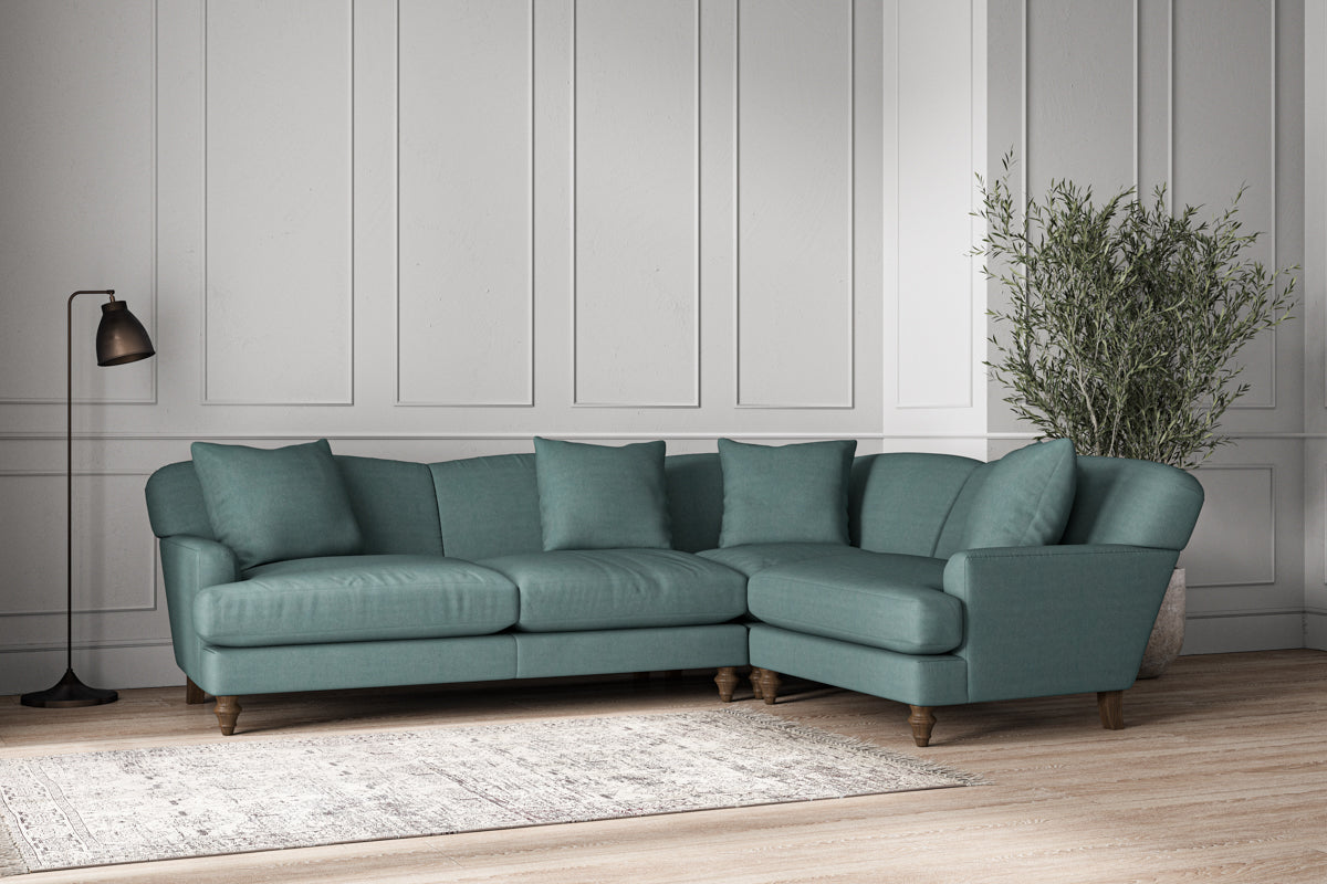 Our Deni large right hand corner sofa is generously proportioned with deep, sumptuous seat cushions for luxurious comfort. Handcrafted from a solid hardwood frame with high-grade steel serpentine springs and foam and fibre wrap filling, this timeless collection celebrates the best of British quality and design. Fine details include in-built back cushions, hand-turned hardwood feet and a set of four scatter cushions for added comfort.