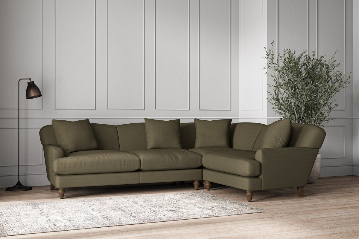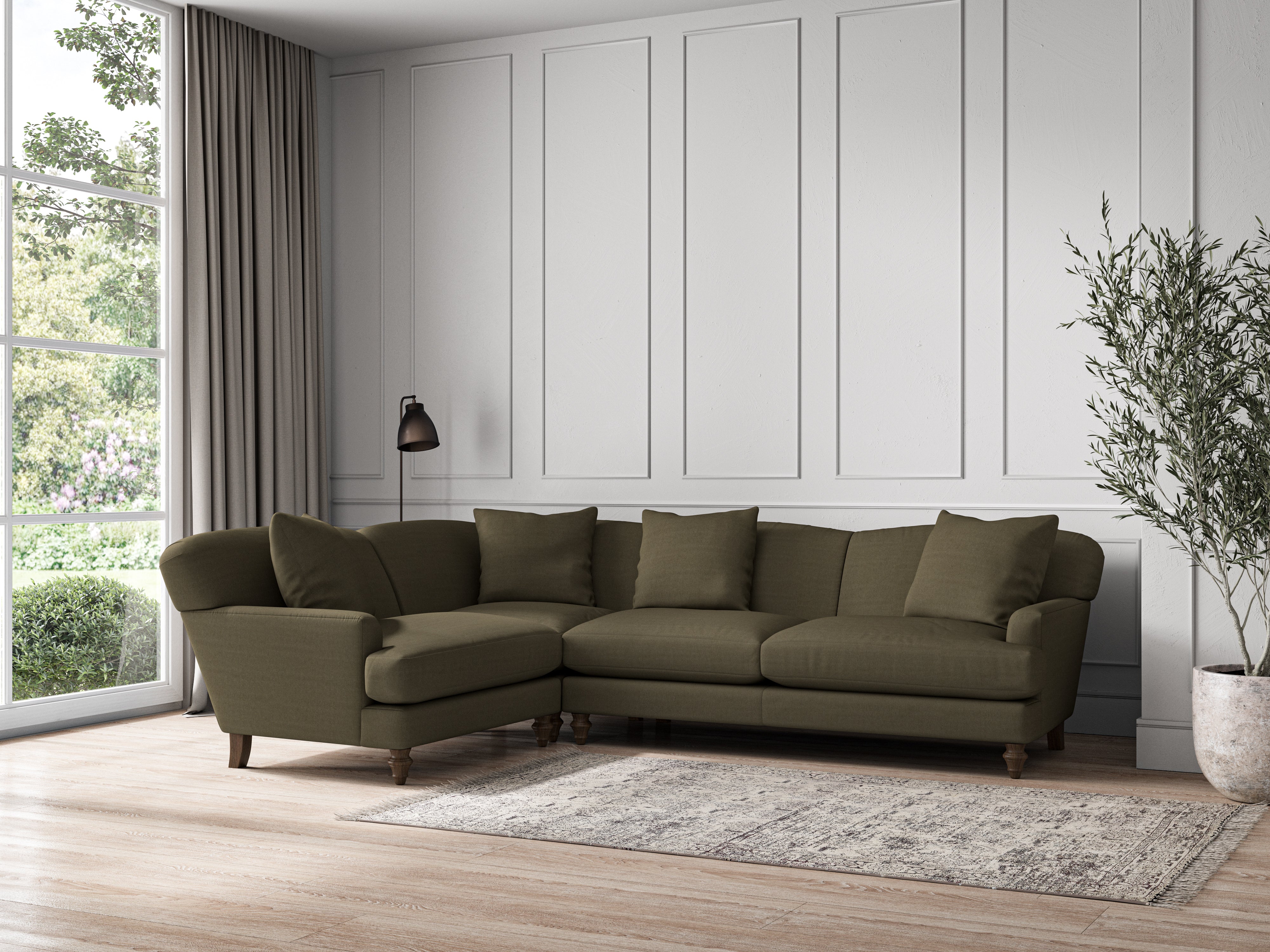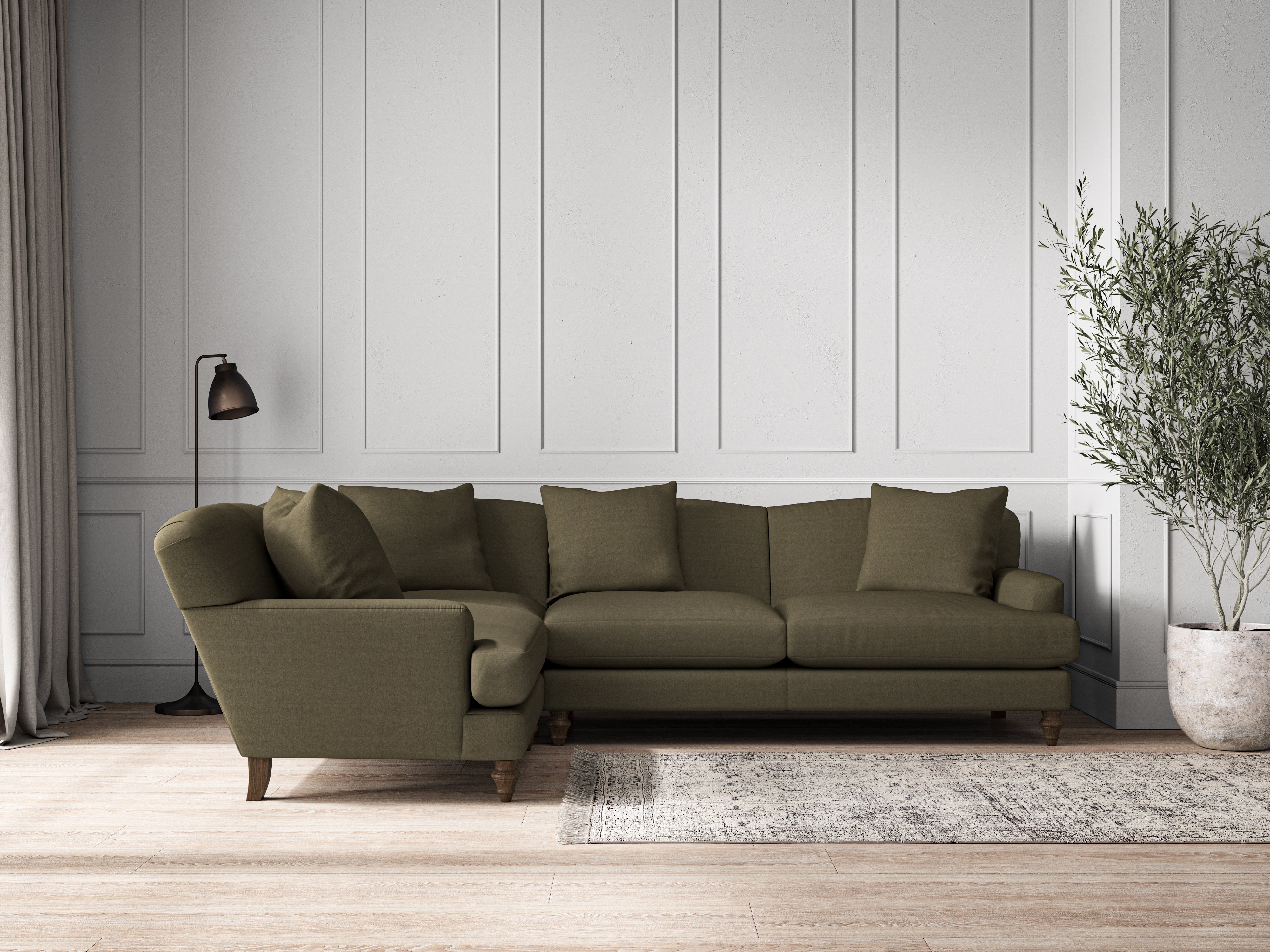Our Deni large right hand corner sofa is generously proportioned with deep, sumptuous seat cushions for luxurious comfort. Handcrafted from a solid hardwood frame with high-grade steel serpentine springs and foam and fibre wrap filling, this timeless collection celebrates the best of British quality and design. Fine details include in-built back cushions, hand-turned hardwood feet and a set of four scatter cushions for added comfort.
