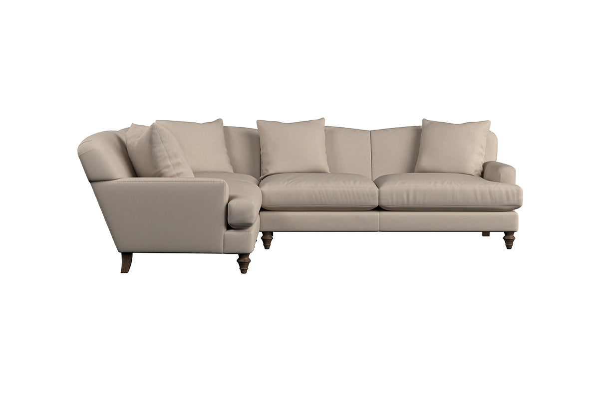Our Deni large left hand corner sofa is generously proportioned with deep, sumptuous seat cushions for luxurious comfort. Handcrafted from a solid hardwood frame with high-grade steel serpentine springs and foam and fibre wrap filling, this timeless collection celebrates the best of British quality and design. Fine details include in-built back cushions, hand-turned hardwood feet and a set of four scatter cushions for added comfort.