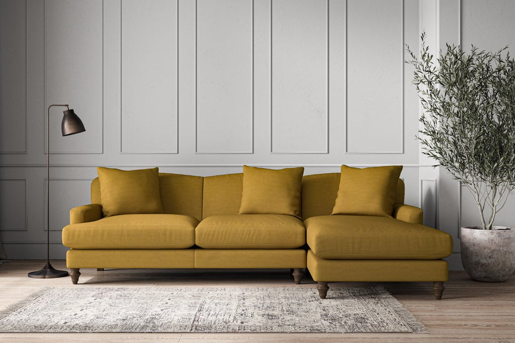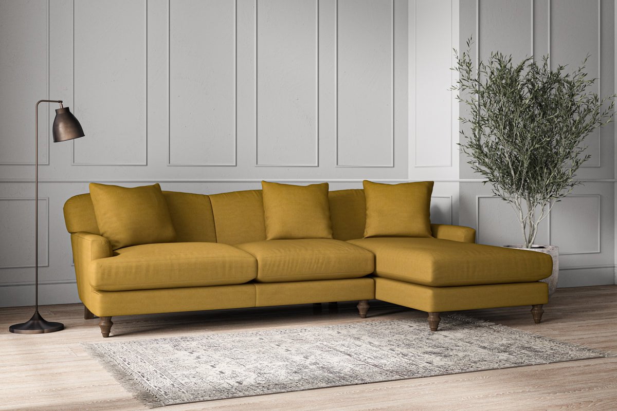 Deni Large Right Hand Chaise Sofa - Recycled Cotton Ochre