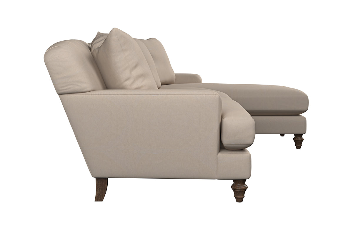 Our Deni large right hand chaise sofa is generously proportioned with deep, sumptuous seat cushions for luxurious comfort. Handcrafted from a solid hardwood frame with high-grade steel serpentine springs and foam and fibre wrap filling, this timeless collection celebrates the best of British quality and design. Fine details include in-built back cushions, hand-turned hardwood feet and a set of three scatter cushions for added comfort.
