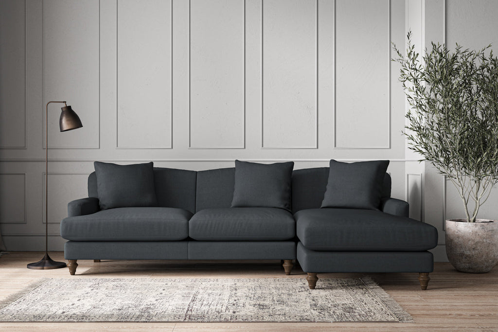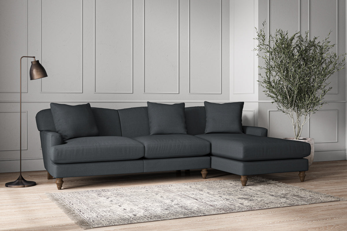 Our Deni large right hand chaise sofa is generously proportioned with deep, sumptuous seat cushions for luxurious comfort. Handcrafted from a solid hardwood frame with high-grade steel serpentine springs and foam and fibre wrap filling, this timeless collection celebrates the best of British quality and design. Fine details include in-built back cushions, hand-turned hardwood feet and a set of three scatter cushions for added comfort.