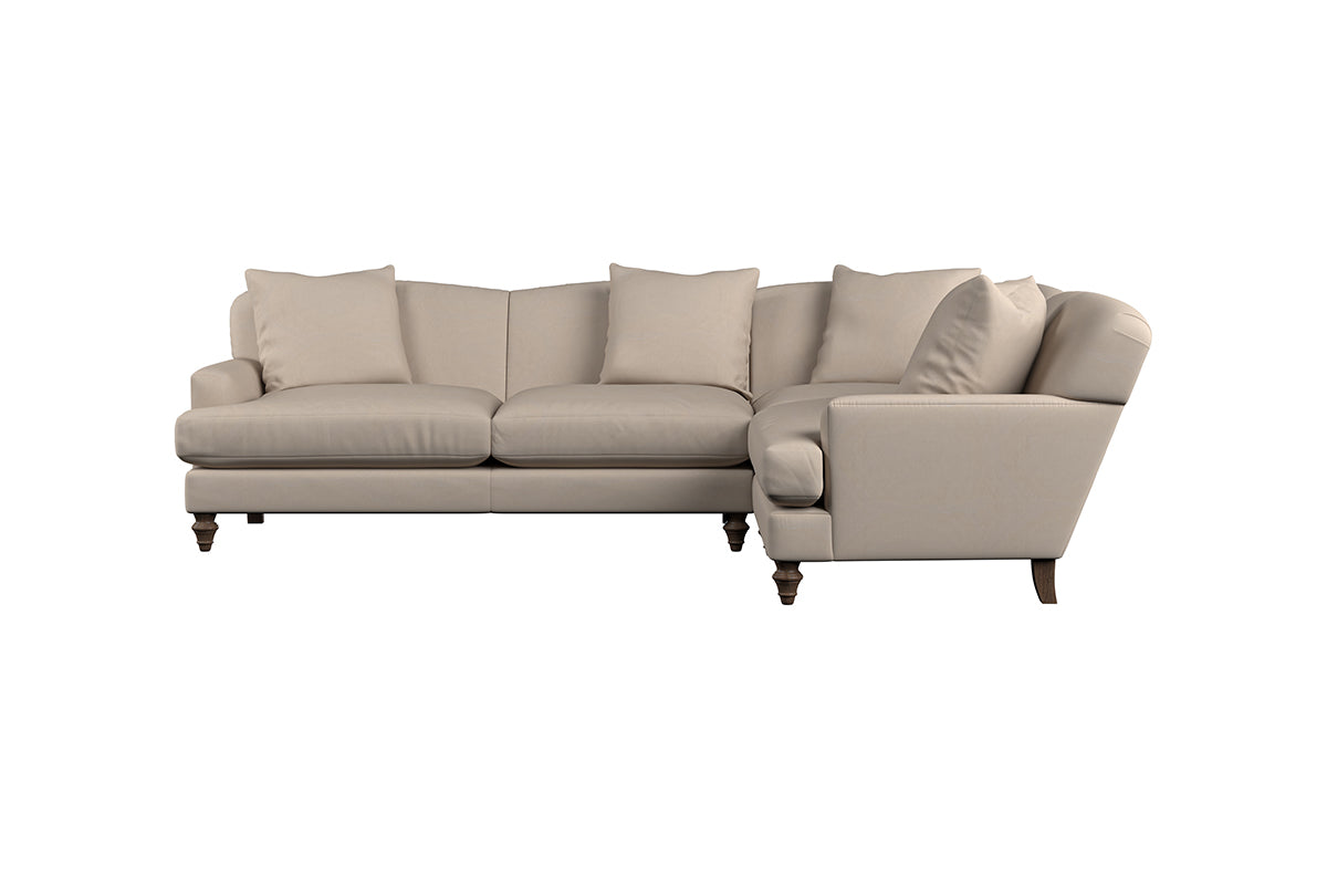 Our Deni large right hand corner sofa is generously proportioned with deep, sumptuous seat cushions for luxurious comfort. Handcrafted from a solid hardwood frame with high-grade steel serpentine springs and foam and fibre wrap filling, this timeless collection celebrates the best of British quality and design. Fine details include in-built back cushions, hand-turned hardwood feet and a set of four scatter cushions for added comfort.