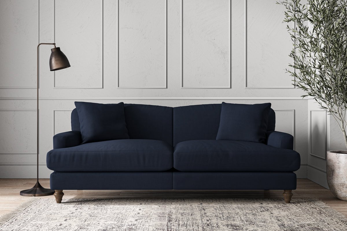Our Deni large sofa is generously proportioned with deep, sumptuous seat cushions for luxurious comfort. Handcrafted from a solid hardwood frame with high-grade steel serpentine springs and foam and fibre wrap filling, this timeless collection celebrates the best of British quality and design. Fine details include in-built back cushions, hand-turned hardwood feet and two scatter cushions for added comfort.