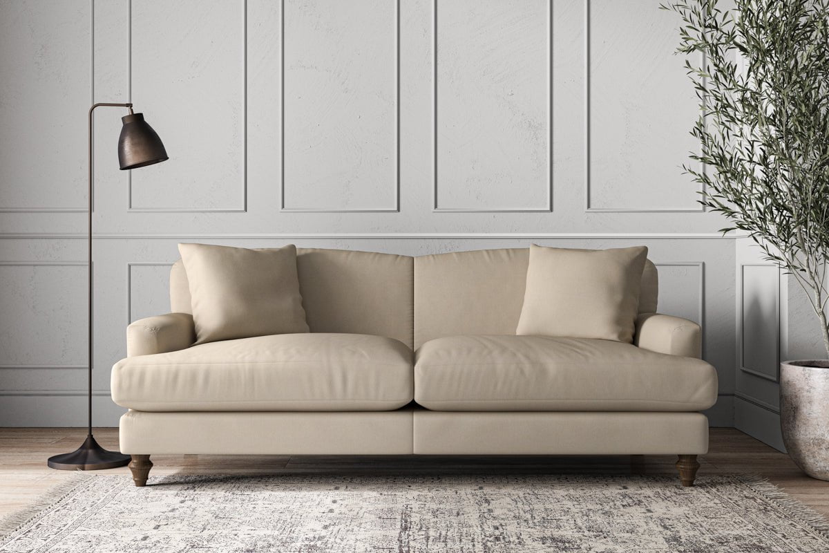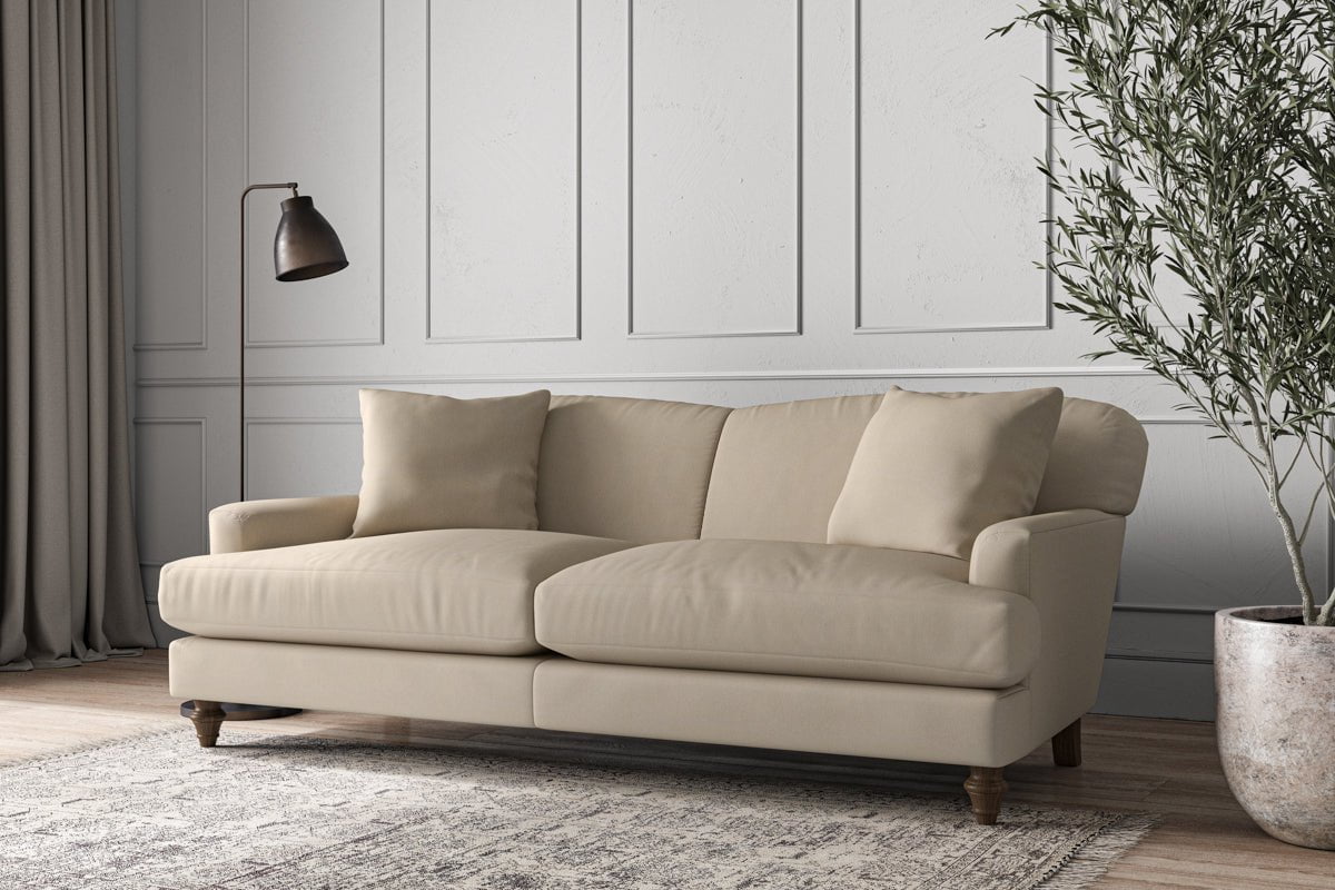 Our Deni large sofa is generously proportioned with deep, sumptuous seat cushions for luxurious comfort. Handcrafted from a solid hardwood frame with high-grade steel serpentine springs and foam and fibre wrap filling, this timeless collection celebrates the best of British quality and design. Fine details include in-built back cushions, hand-turned hardwood feet and two scatter cushions for added comfort.