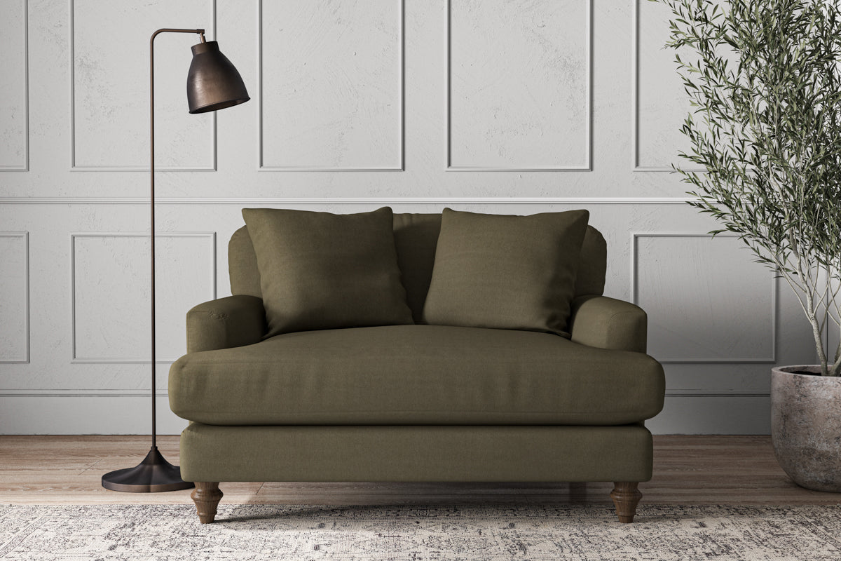 Our Deni love seat is generously proportioned with deep, sumptuous seat cushions for luxurious comfort. Handcrafted from a solid hardwood frame with high-grade steel serpentine springs and foam and fibre wrap filling, this timeless collection celebrates the best of British quality and design. Fine details include in-built back cushions, hand-turned hardwood feet and two scatter cushions for added comfort.
