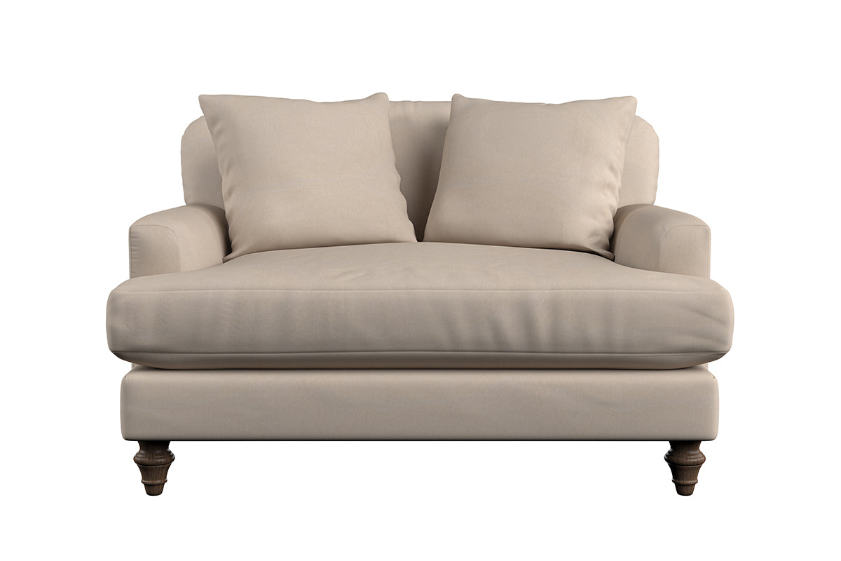 Our Deni love seat is generously proportioned with deep, sumptuous seat cushions for luxurious comfort. Handcrafted from a solid hardwood frame with high-grade steel serpentine springs and foam and fibre wrap filling, this timeless collection celebrates the best of British quality and design. Fine details include in-built back cushions, hand-turned hardwood feet and two scatter cushions for added comfort.