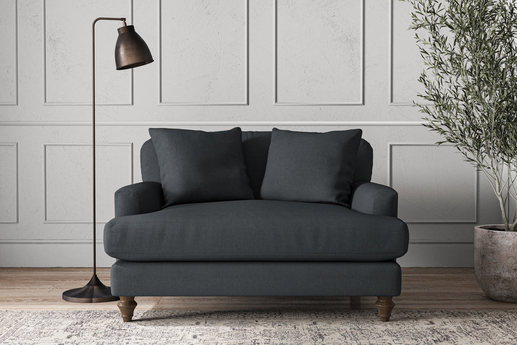 Our Deni love seat is generously proportioned with deep, sumptuous seat cushions for luxurious comfort. Handcrafted from a solid hardwood frame with high-grade steel serpentine springs and foam and fibre wrap filling, this timeless collection celebrates the best of British quality and design. Fine details include in-built back cushions, hand-turned hardwood feet and two scatter cushions for added comfort.