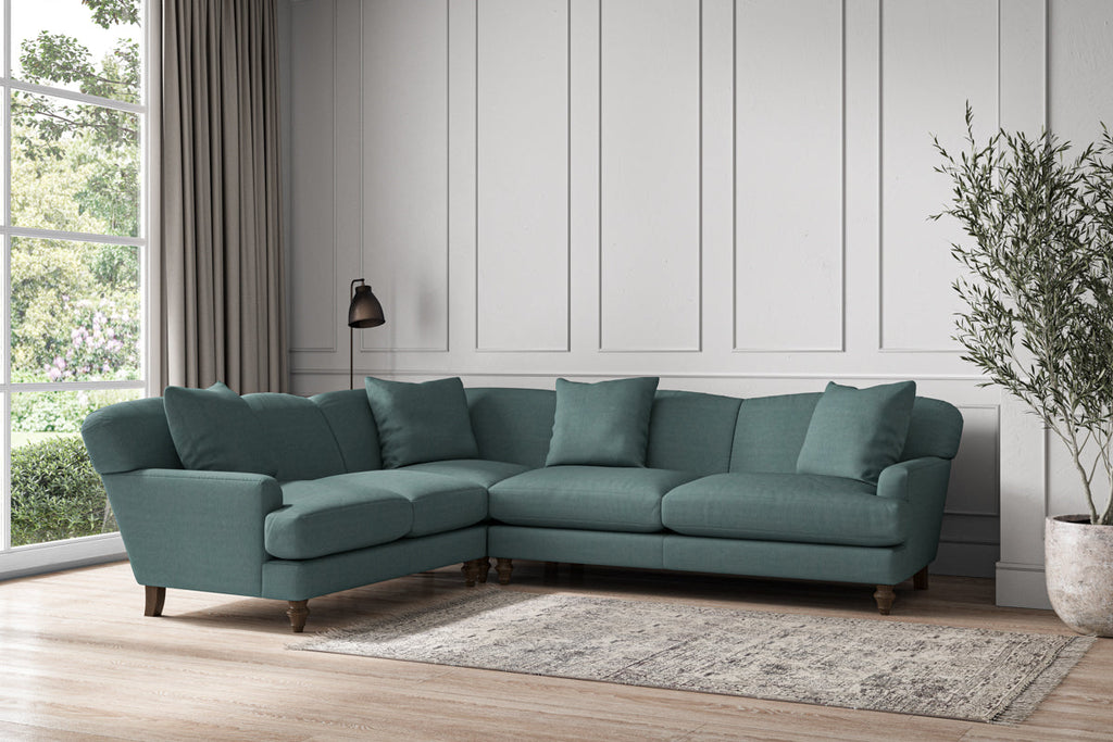 Our Deni super grand left hand corner sofa is generously proportioned with deep, sumptuous seat cushions for luxurious comfort. Handcrafted from a solid hardwood frame with high-grade steel serpentine springs and foam and fibre wrap filling, this timeless collection celebrates the best of British quality and design. Fine details include in-built back cushions, hand-turned hardwood feet and a set of four scatter cushions for added comfort.