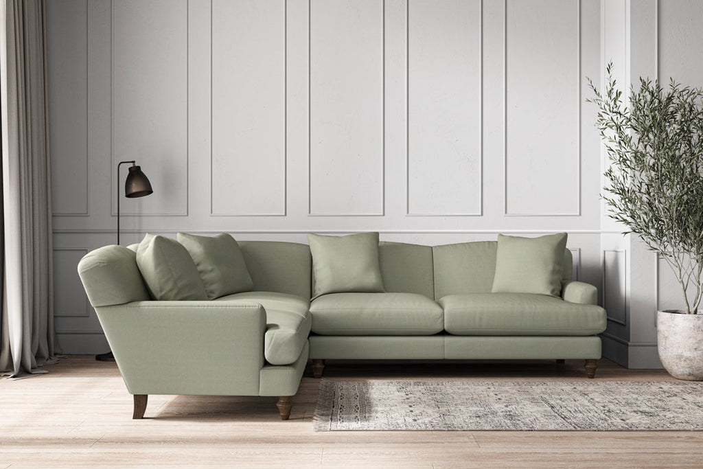 Our Deni super grand left hand corner sofa is generously proportioned with deep, sumptuous seat cushions for luxurious comfort. Handcrafted from a solid hardwood frame with high-grade steel serpentine springs and foam and fibre wrap filling, this timeless collection celebrates the best of British quality and design. Fine details include in-built back cushions, hand-turned hardwood feet and a set of four scatter cushions for added comfort.