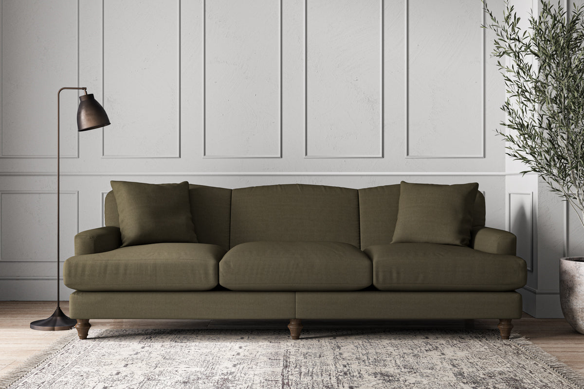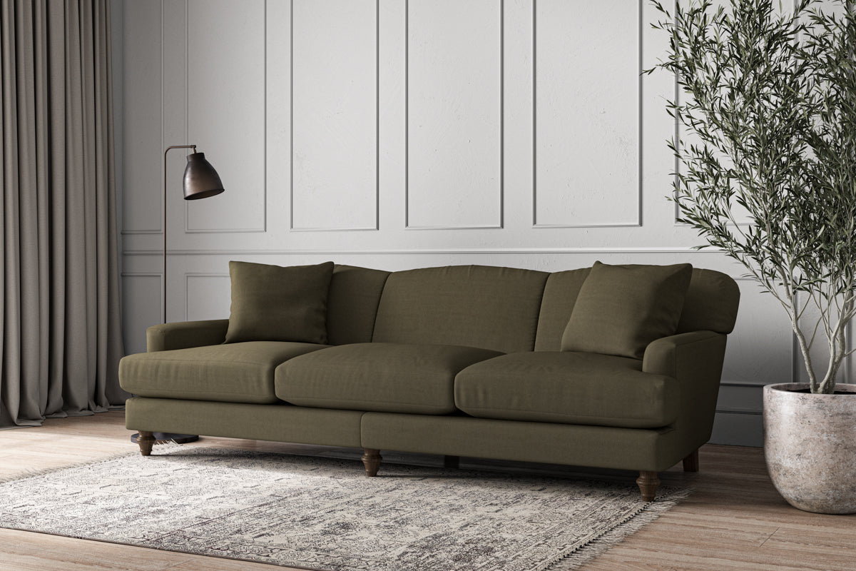 Our Deni super grand sofa is generously proportioned with deep, sumptuous seat cushions for luxurious comfort. Handcrafted from a solid hardwood frame with high-grade steel serpentine springs and foam and fibre wrap filling, this timeless collection celebrates the best of British quality and design. Fine details include in-built back cushions, hand-turned hardwood feet and a set of two scatter cushions for added comfort.