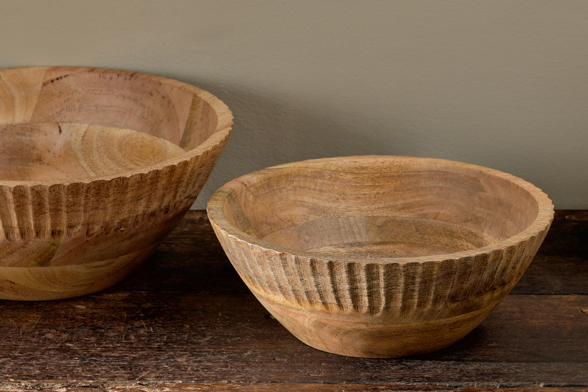 Mango wood has a light natural tone with natural variation within the grain. We love working with this material which is a by-product of the mango-growing industry in India and repurposing it to give it a new lease of life. Once the trees are no longer fruitful, they are taken down and we use them to create many of our stylish, eclectic and sustainable furnishings for use throughout the home. These bowls have been hand-etched using traditional methods.
