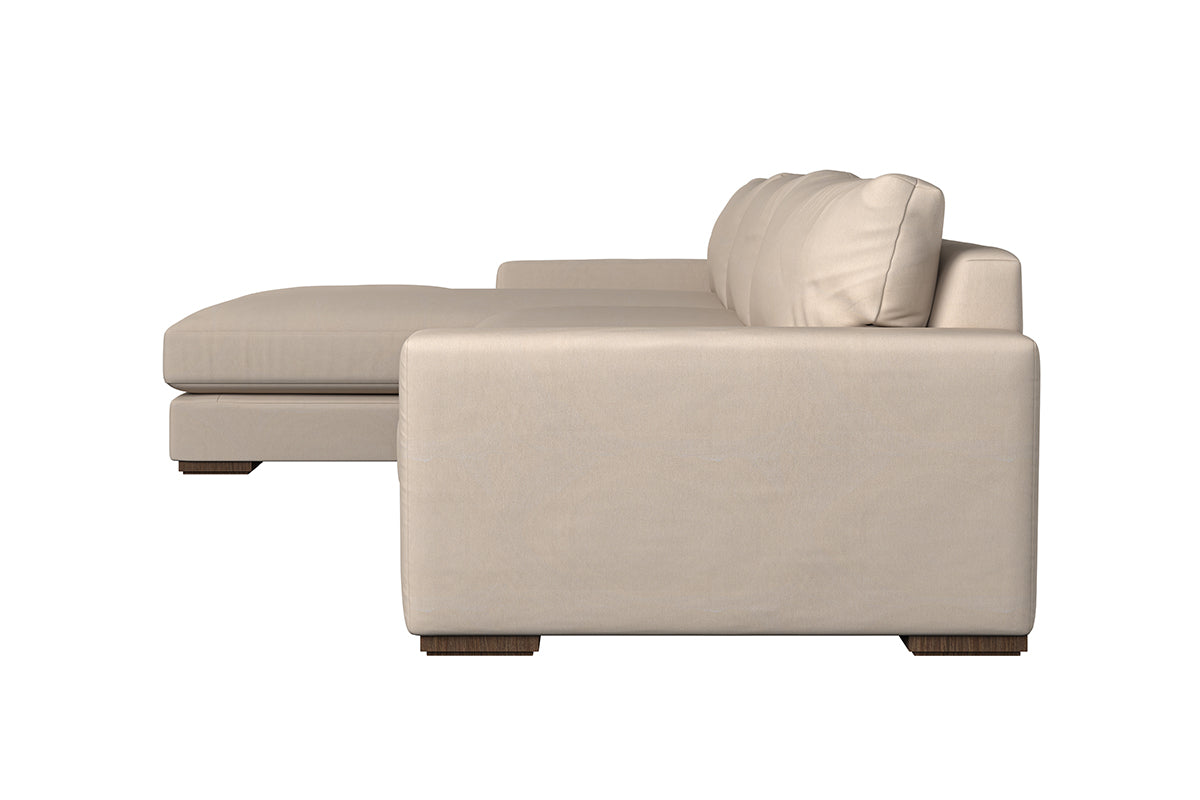 The laid-back sculptural shape of the Guddu grand left hand chaise sofa brings effortless style to an interior. The generous arms and deep seat cushions make this collection the perfect choice for families or those that like a bit of extra space to stretch out. Details include separate back cushions, exceptional quality fabrics and solid wood block feet. Each piece is handcrafted by experts using traditional techniques for a quality finish that celebrates the best of British craftmanship.