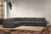 The laid-back sculptural shape of the Guddu grand left hand corner sofa brings effortless style to an interior. The generous arms and deep seat cushions make this collection the perfect choice for families or those that like a bit of extra space to stretch out. Details include separate back cushions, exceptional quality fabrics and solid wood block feet. Each piece is handcrafted by experts using traditional techniques for a quality finish that celebrates the best of British craftmanship.