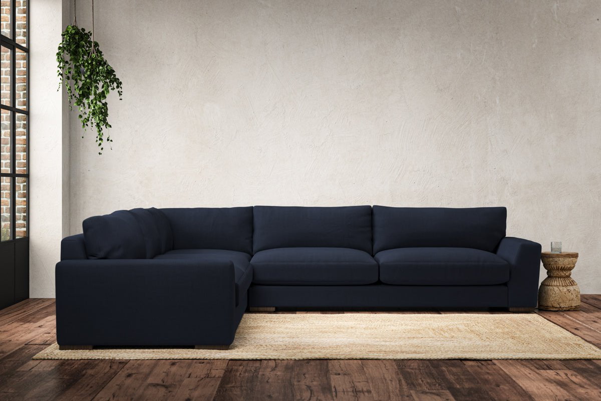 The laid-back sculptural shape of the Guddu grand left hand corner sofa brings effortless style to an interior. The generous arms and deep seat cushions make this collection the perfect choice for families or those that like a bit of extra space to stretch out. Details include separate back cushions, exceptional quality fabrics and solid wood block feet. Each piece is handcrafted by experts using traditional techniques for a quality finish that celebrates the best of British craftmanship.