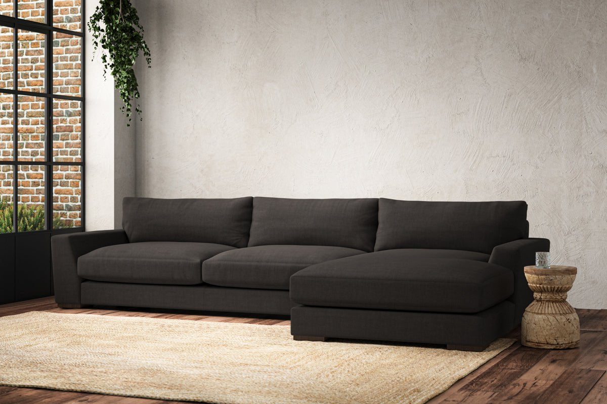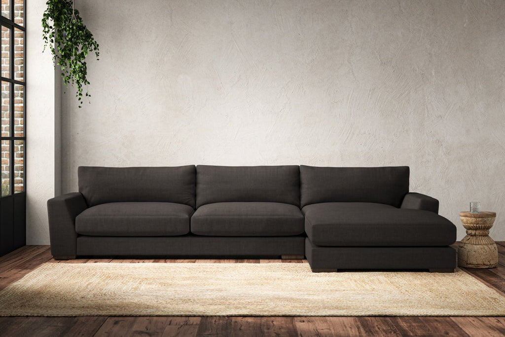 Guddu Grand Right Hand Chaise Sofa - Brera Linen Espresso