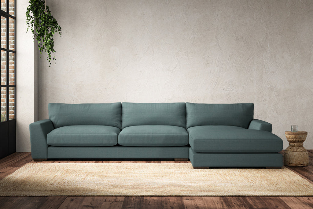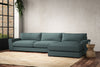 The laid-back sculptural shape of the Guddu grand right hand chaise sofa brings effortless style to an interior. The generous arms and deep seat cushions make this collection the perfect choice for families or those that like a bit of extra space to stretch out. Details include separate back cushions, exceptional quality fabrics and solid wood block feet. Each piece is handcrafted by experts using traditional techniques for a quality finish that celebrates the best of British craftmanship.