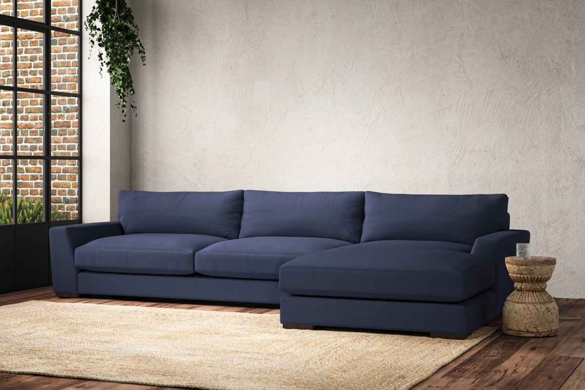 Guddu Grand Right Hand Chaise Sofa - Recycled Cotton Navy