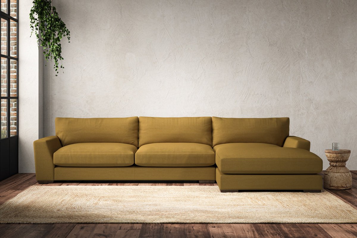 Guddu Grand Right Hand Chaise Sofa - Recycled Cotton Ochre