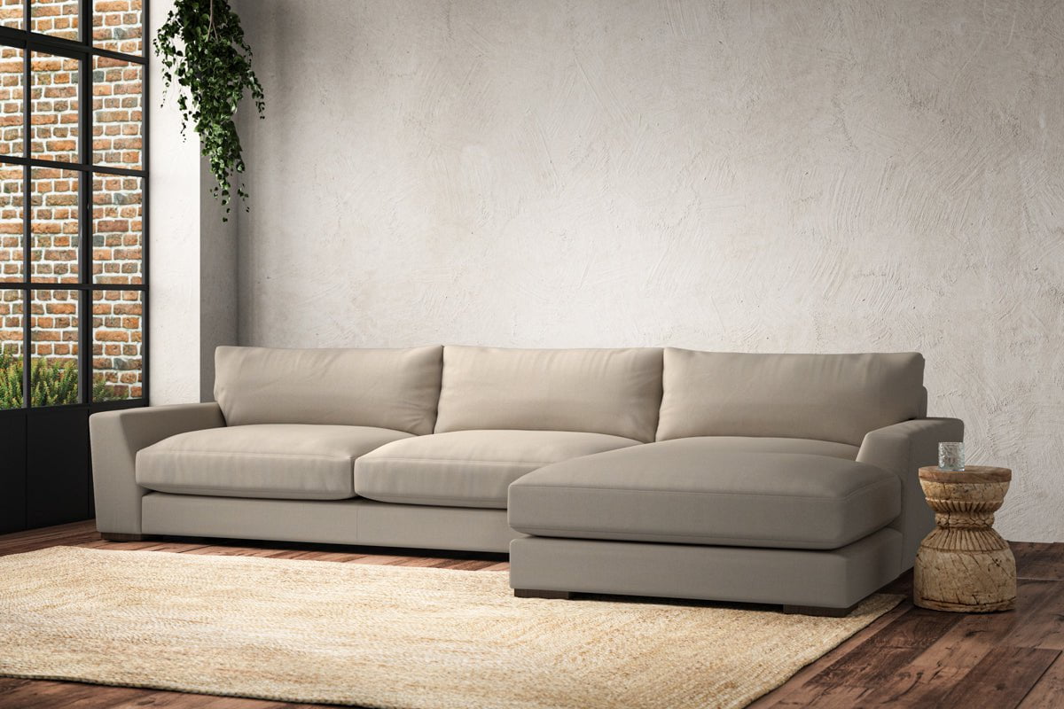 Guddu Grand Right Hand Chaise Sofa - Recycled Cotton Stone